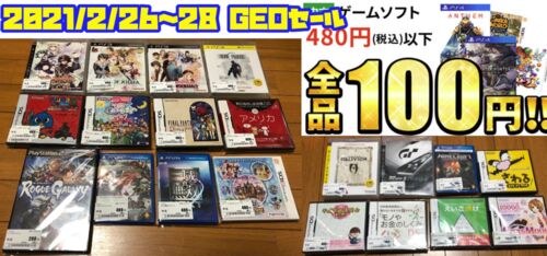 2021年2月26~28日に開催された「ゲオのスペシャルプライスセール」。 今回のセールは、480円以下の中古ゲームソフトが全品100円(税込)になるという、100円ショップよりも税金分10円安いウルトラスーパー太っ腹なセールだ。 ...と言っても、中古価格が4…